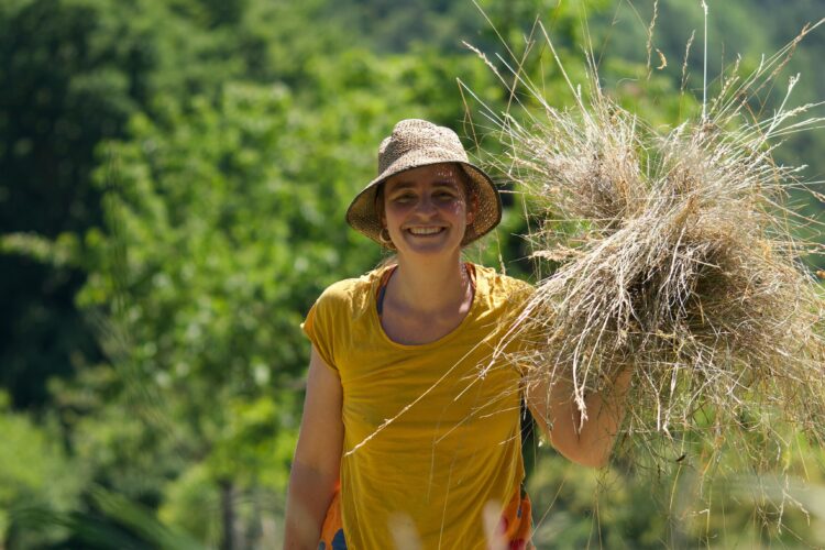 «Unser Ziel ist es, Gärten anzulegen, die in sich kraftvoll, lebendig sein können, damit in ihnen Gemüse wachsen kann, das Körper, Seele und Geist nährt», beschreibt Dominique Oser die Arbeitsweise von Nuglar Gärten. «Dazu tauchen wir tief in die Natur mit ihren Naturwesen ein und schulen unsere Wahrnehmung, um immer feiner zu verstehen, was sie benötigt.» Vor der Arbeit macht das Team eine Einstimmung mit Morgenspruch und Eurythmie. «Diese Einstimmung hilft uns, auf dem Feld anzukommen, uns selbst und das Feld wahrzunehmen und dem Feld unsere volle Aufmerksamkeit zu schenken. Wir versuchen, eine dienende Haltung einzunehmen, um die Heilwirkung der Natur in unseren Gärten zu fördern und wachsen zu lassen», sagt Dominique Oser und wendet sich wieder den Kefen zu.